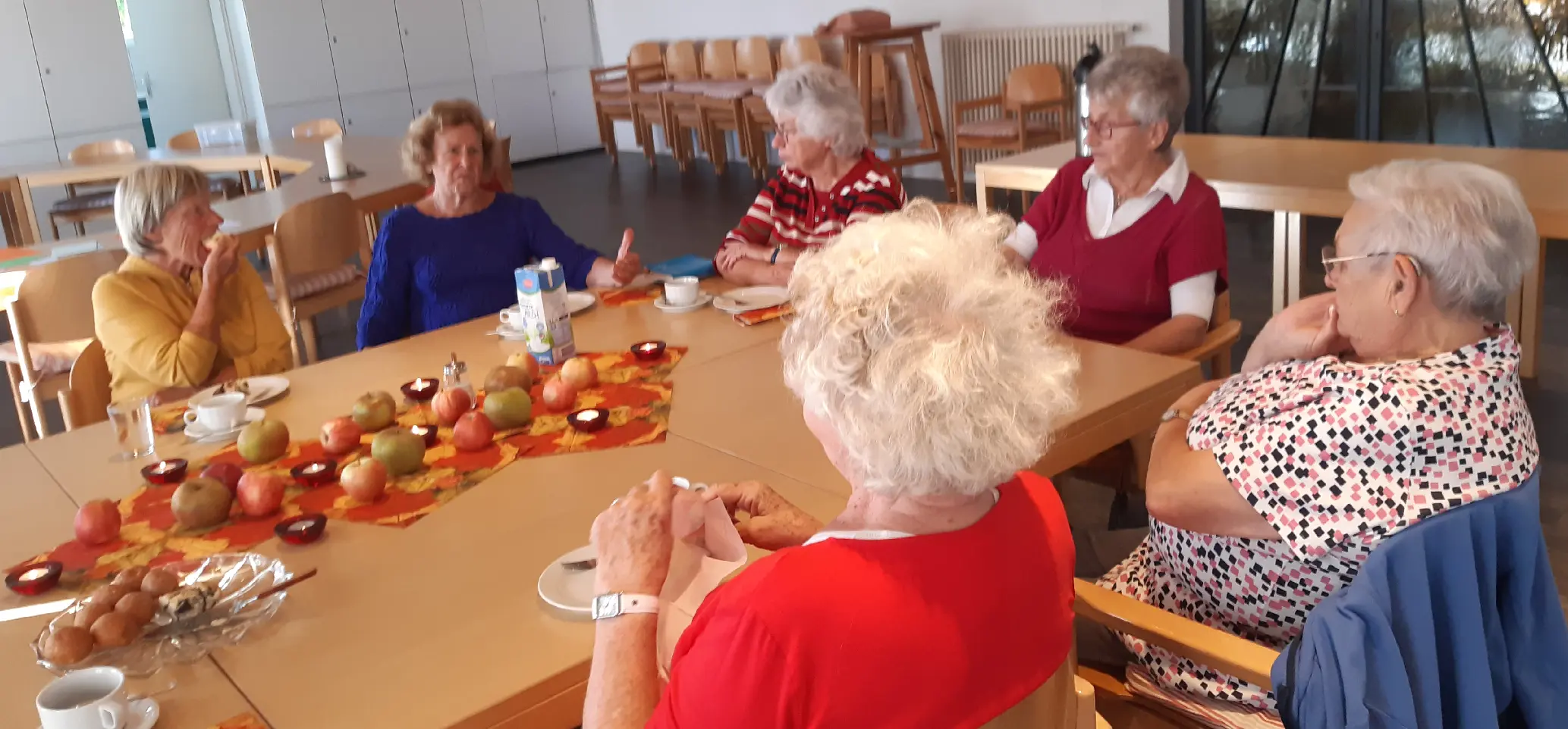 Unsere Nachmittage sind sehr verschieden gestaltet, manchmal lustig, manchmal tiefsinnig oder informativ. Auf jeden Fall gibt es immer an einem schön gedeckten Tisch Kaffee und Kuchen.